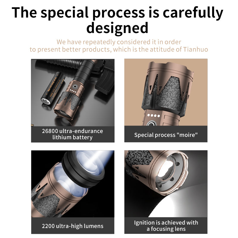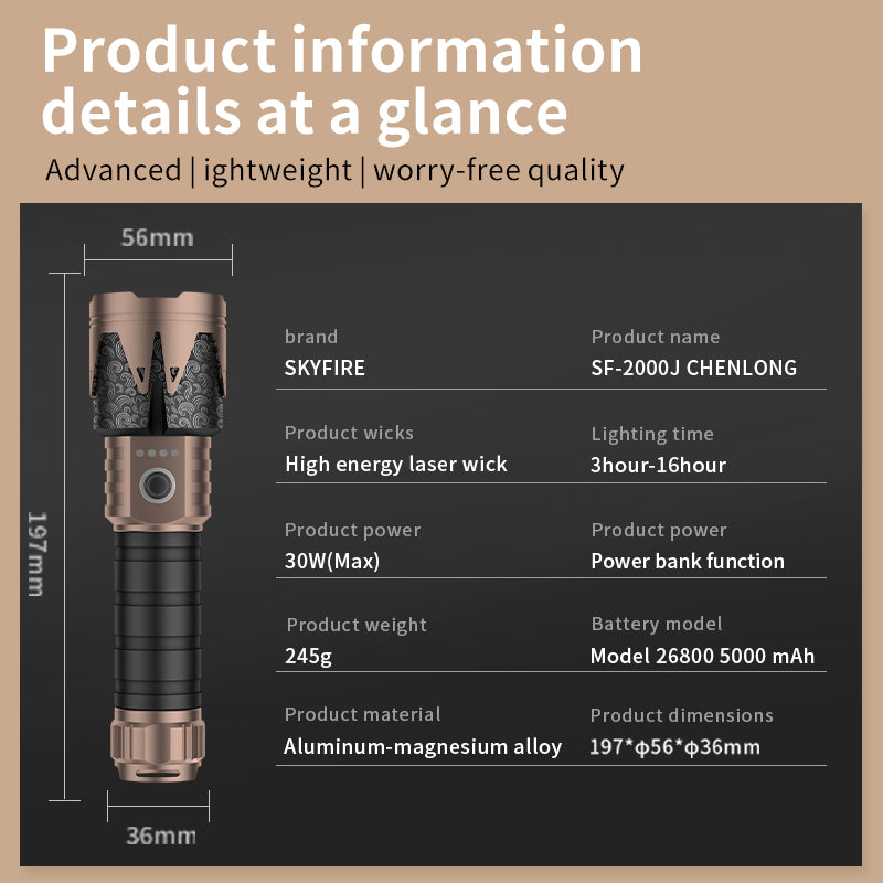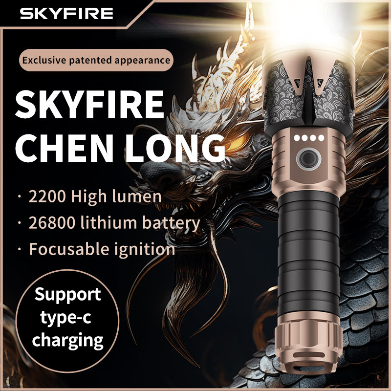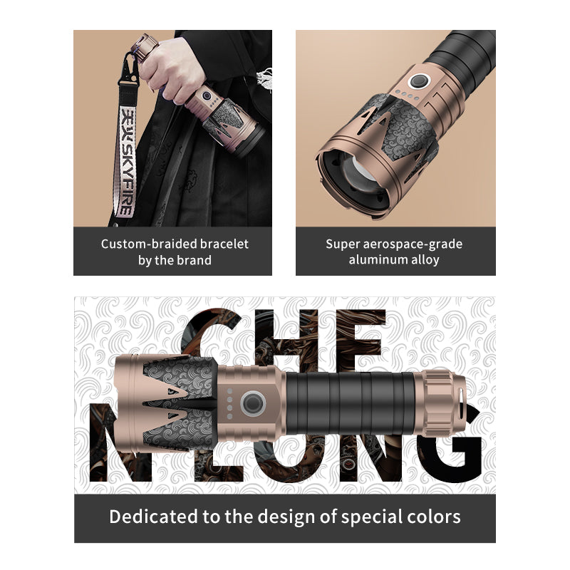 SKYFIRE 2000J Rechargeable Tactical Flashlight - 1800 Lumens